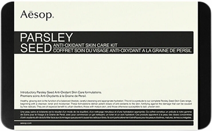 Sættet indeholder: Parsley Seed Facial Cleanser, Parsley Seed Anti-Oxidant Facial Toner, Parsley Seed Anti-Oxidant Serum.