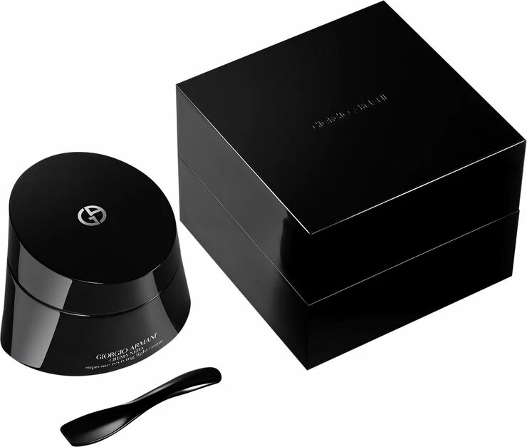 Oplev Crema Nera, en let-struktureret genoplivende creme, der er målrettet mod alle tegn på ældning og gendanner hudens ungdommelige og strålende udseende. Crema Nera indeholder en omhyggeligt kureret blanding af potente forskønnende eliksirer, der behandler alle tegn på ældning såsom tab af fasthed, mørke pletter, tørhed, mangel på ren udstråling og klarhed samt fine linjer og rynker. Det leverer 24-timers hudhydrering og efterlader huden blød, smidig og naturligt glødende. Ferskenkerneolie og Armani-patenterede ingredienser fugter hudbarrieren for mærkbare resultater. Essentielle ingredienser ekstraheres i deres reneste form og giver en stærkere essens af hudfordele inde i den samme dobbelte silke-strukturerede creme.