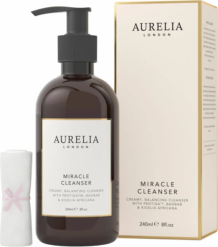 Intelligent, aromatisk og cremet glider Miracle Cleanser hen over huden og løfter alle urenheder og makeup. Den sammensmelter probiotika og peptideteknologi med bio-organiske plante- og blomsteressenser, og har en opløftende duft af essentielle olieblandinger af Kamille, Eucalyptus, Rosmarin og Bergamotte. Denne cremede rens polerer alle døde hudceller og makeup væk, mens den hjælper med at stimulere hudens naturlige fornyelsesproces. BRUG: Påfør tør hud og massér i dybden for at løfte snavs og stimulere blodcirkulationen. Fjern rensen med Aurelia Probiotic Skincares antibakterielle Bambus-musselinklud for blidt at eksfoliere og opnå en klar, ren og strålende teint. Sørg for, at musselinen er varm og fugtig og stryg den blidt hen over huden.