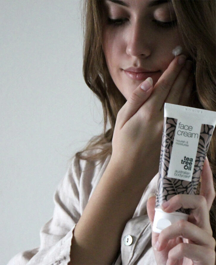 Face Cream fra Australian Bodycare indeholder plejende og fugtgivende egenskaber, der nærer huden hele dagen og natten. Ansigtscremen modvirker bumser og hudorme og holder huden sund og velplejet. Ansigtscremen indeholder bakteriemodvirkende Tea Tree Oil, der danner et beskyttende lag på huden, så bakterier og andet snavs ikke trænger ned i porerne i huden og sætter sig til urenheder. Cremen forebygger derfor nye urenheder i at opstå, så du kan opnå en pæn og sund hud fri for bumser og hudorme. Face Cream indeholder ud over Tea Tree Oil også blødgørende og fugtgivende ingredienser, bl.a. Macademia Nut Oil, som opretholder hudens naturlige og sunde fugtbalance. For at få det bedste resultat med Face Cream anbefaler vi, at du også bruger Australian Bodycare Face Wash, Face Tonic og Spot Stick fra samme serie.