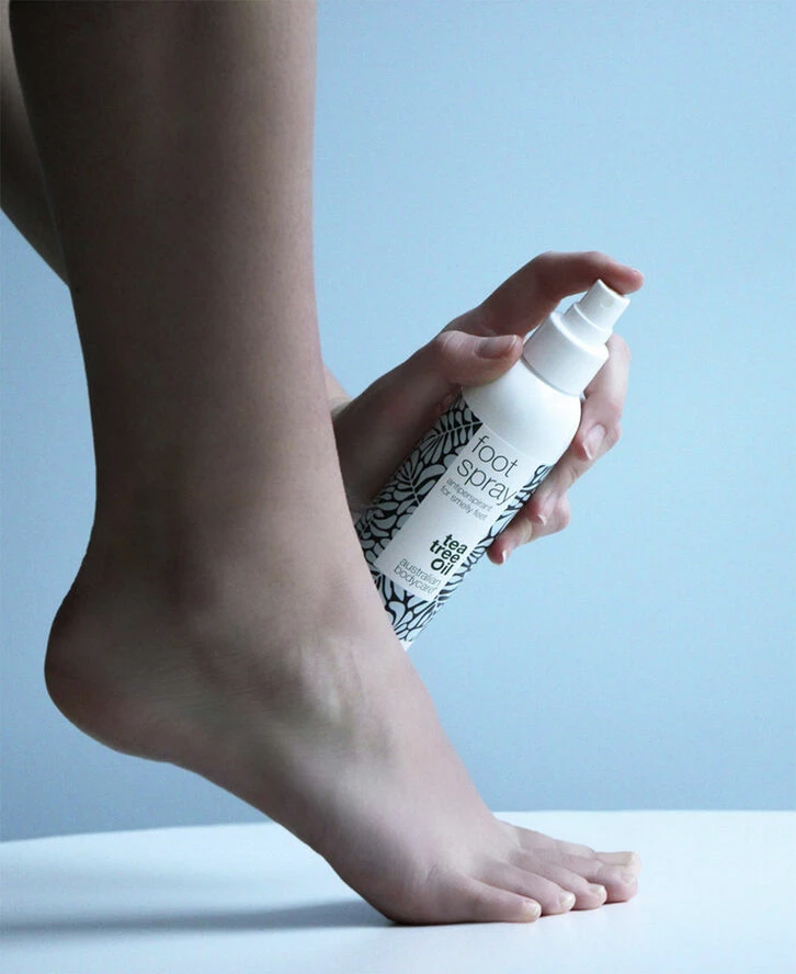 Med Foot Spray kan du blive fri for sure tæer, fødder og sko. Fodsprayen fungerer som en fod deodorant, der nedsætter svedproduktionen og dermed forebygger sure tæer og lugtende fødder. Den 100% naturlige Tea Tree Oil modvirker bakterier på fødderne, så de holdes friske dagen igennem. Fodspray virker samtidig kølende og lindrende på trætte og ømme fødder. Du kan derfor både anvende Foot Spray om morgenen, så du forebygger sure tæer, og om aftenen for at køle dine trætte fødder. Foot Spray er dermatologisk testet og egnet til alle hudtyper og kan også bruges som en effektiv skospray til lugtende sko og støvler.