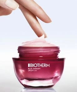 Ansigtskonturer mister med tiden deres definition, da huden fra midt tyverne mister ca. 1% kollagen pr. år , hvilket medfører tab af fasthed og manglende elasticitet i huden. Biotherm Blue Therapy Red Algae Uplift DAY er en opstrammende og fugtgivende dagcreme til normal/kombineret hud, der forbedrer hudens elasticitet og fasthed ved hjælp af kollagenfraktion peptid samt “Red Algae ” ekstrakt, kendt som Rodophycea, der er høstet langs Atlantahavets kyst. Hudens linjer og rynker synes reduceret og hudens naturlige glød forbedres. Cremen har en forfriskende olie/vand tekstur der omslutter huden for en fløjlsblød, fugtet og glattere hud.Anvendes om morgenen på nyrenset hud, eventuelt efter din serum. Påfør din dagcreme fra midten af ansigtet og ud ad, i opadgående bevægelser.