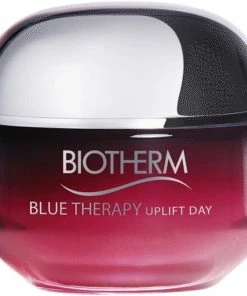 Ansigtskonturer mister med tiden deres definition, da huden fra midt tyverne mister ca. 1% kollagen pr. år, hvilket medfører tab af fasthed og manglende elasticitet i huden. Biotherm Blue Therapy Uplift Day er en opstrammende og fugtgivende dagcreme til normal/kombineret hud, der forbedrer hudens elasticitet og fasthed ved hjælp af kollagenfraktion peptid af naturlig oprindelse samt “”Red Algae””-ekstrakt, kendt som Rodophycea, der er høstet langs Atlantahavets kyst. Hudens linjer og rynker synes reduceret og hudens naturlige glød forbedres. Indeholder også Biotherms regenererende signatur ingrediens, Life Plankton probiotiske fraktioner, af naturlig oprindelse. Cremen har en forfriskende olie/vand tekstur der omslutter huden for en fløjlsblød, fugtet og glattere hud. Blue Therapy Uplift Day kommer også som en nærende dagcreme til tør hud, samt en opstrammende natcreme til alle hudtyper. Velegnet til sensitiv hud. Produktets miljøbevidste emballage består af et op til 100% genanvendt plastiklåg, en genanvendelig glaskrukke med 40% genanvendt glas samt æske uden cellofan.