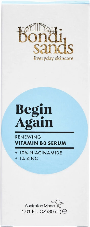 Begin Again Vitamin B3 Serum er et serum, der hjælper med give en mere klar, ensartet og glat hudoverflade. Den hurtigabsorberende formel er beriget med blandt andet zink og ekstrakt fra planten Lilly Pilly, som får huden til at se mere frisk og sund ud. Velegnet til alle hudtyper, også sensitiv hud. Vegansk. Hurtigt absorberende serum med vitamin B3 (niacinamid) Giver en synligt klarere og sundere hud Velegnet til alle hudtyper, også sensitiv hud Produktet er dermatologisk testet, ikke-komedogent (tilstopper ikke porerne) og uden parfume. Alle produkter i Everyday Skincare-serien er i emballage produceret af genanvendt plast og indpakket i genanvendeligt materiale. Anvendelse 1: Påfør 2-3 dråber af serummet på ren og tør hud. 2: Når serummet er absorberet, kan du påføre andre serummer eller olier. Påfør derefter en ansigtscreme. 3: For de bedste resultater bør serummet påføres dagligt, både morgen og aften.
