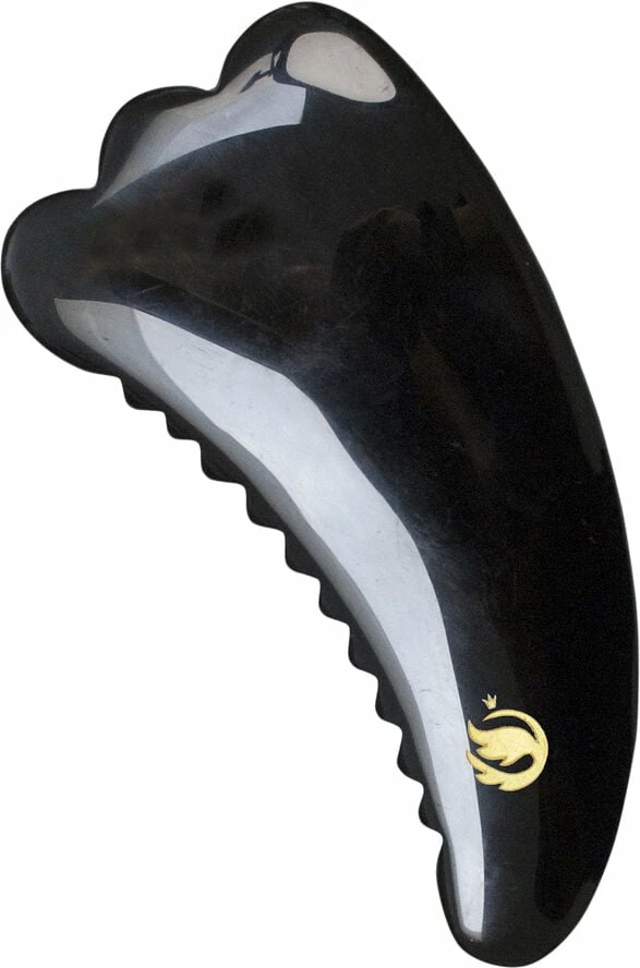 Calmlish Body Gua Sha med tekstur er specielt designet til at arbejde på genstridigt bindevæv, hvad enten det er slap hud, gamle ar eller appelsinhud. Den ene side arbejder i de yderste bindevævslag, og den anden side på de dybere, så du kan komme i dybden med din appelsinhud. Denne Gua Sha er særlig god mod appelsinhud samt til opstramning af slap hud på lår, bagdel, underben, mave og overarme. Den ligger godt i hånden, således at du let kan bruge den på selv besværlige områder som baglår og bagdel. Krystallerne har en behagelig tyngde, sådan at du ikke behøver at ligge nær så meget press i din massage, da krystallen gør det hårde arbejde for dig. OBSIDIAN er en kraftfuld vulkanisk sten. (Måske kender du den som dragonglass i Game of Thrones?) Den er brugt i krystalterapien som beskyttelse mod forurening – energimæssigt, følelsesmæssigt og fysisk. Den bruges mod stress, spændinger og de fysiske stagneringer, der sker i huden, som resultat af ophobet spænding. Giver ro i huden og reducerer spændinger i ansigtsmusklerne. Den er til dig, der er en rigtig power-kvinde, som har brug for en time-out fra en travl hverdag, med mere gøren end væren. Den har en rensende effekt på krop og sind, der beskytter mod dårlige energier og negative vibrationer. Bemærk at alle vores sten er unikke og derfor vil der være variationer i farve, form, struktur, overflade etc.