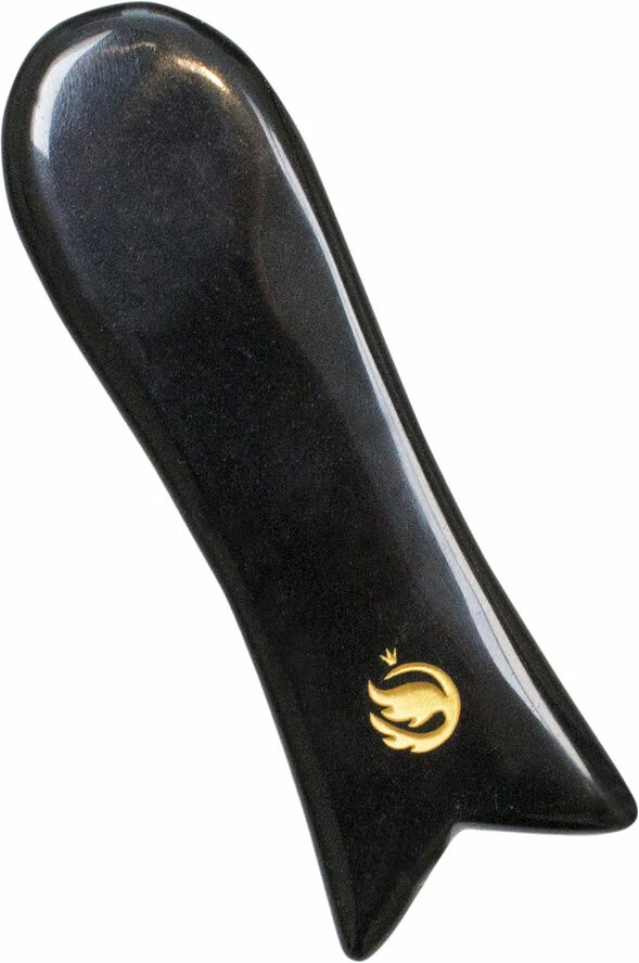 Denne gua sha har form som en lille fisk, og er den perfekte begynder-gua sha til lymfedrænage, muskelafspænding og akupressur. Siden på fisken er til lymfedrænage og lifting. Hovedet er til at gå i dybden ved muskelspændinger, og til et let drænage rundt om øjnene. Halen er til kæbekant, kindben og øjenbryn. Halespidserne bruges til akupressur og til at arbejde i zig zag i rynkerne for at øge blodcirkulationen i området og derigennem hudfornyelsen. OBSIDIAN Giver huden ekstra beskyttelse mod stråling og forurening både energimæssigt, følelsesmæssigt og fysisk. Den er til dig, der er stresset og sidder mange timer bag skærmen. Denne vulkanske sten bruges mod stress, spændinger og de fysiske stagneringer, der sker i huden som resultat af ophobede spændinger. Bemærk at alle sten er unikke og derfor vil der være variationer i farve, form, struktur, overflade etc.