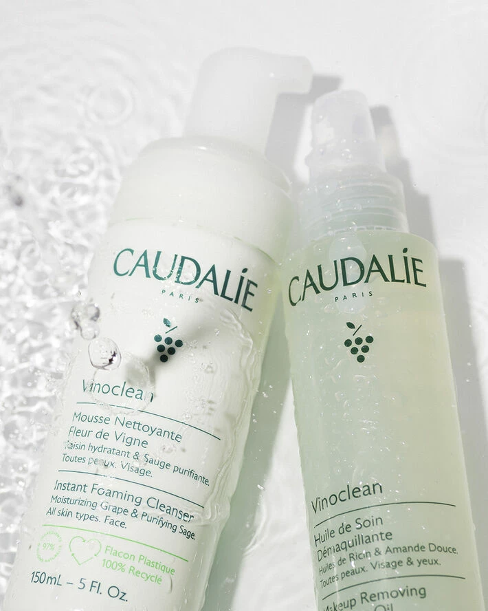 Caudalies veganske Make-up removing cleansing oil opløser alle typer af make-up, også vandfast. Passer til selv den mest sensitive hud med et 100% naturligt produkt. En meget mild og alligevel effektivt renseprodukt der bliver mælkehvid når den blandes med vand. Efterlader huden helt ren, blød og fugtede, uden at efterlade en fedtet film. Emballagen/Flasken er 100% genanvendelig.