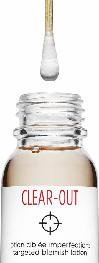 CLEAR-OUT targeted blemish lotion renser og udtørrer bumser og urenheder i huden og reducerer synligt rødme. Hvordan bruges den? Skal ikke rystes før brug. Dyp en vatpind i det hvide pulver i bunden af flasken og påfør det på urenheden/bumsen. Lad det tørre natten over og skyl af med vand næste morgen.