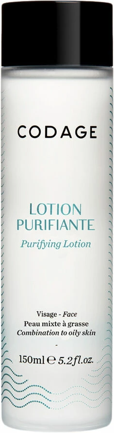 PURIFYING LOTION er et koncentrat af frugtsyrer (AHA), salicylsyre (BHA) og zink, som eliminerer døde hudceller, renser tilstoppede porer, regulerer talgproduktionen, og efterlader en ren og regenereret hud. Detoxende ingredienser fjerner forureningspartikler, og efterlader en helt ren hud med mere udstråling. PURIFYING: BHA – Salicylsyre – Zink REGENERATING: AHA frugtsyrer – Allantoin DETOXIFYING: Kransburre – Havvand Anvendelse: Bruges på en vatrondel til ansigt, hals og décolleté efter rensning og / eller efter brug af en maske. Brug den dagligt, morgen og / eller aften. Skal ikke skylles af. Anvend derefter serum(erne) og cremer.