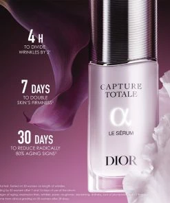 Capture Totale Le Sérum er det første aldersforebyggende serum fra Dior, der synligt forbedrer hudens fasthed og korrigerer de vigtigste alderstegn: udtrykslinjer, rynker, synlige porer, ujævnheder og tab af elasticitet, glød, fasthed og fylde. Diors forskning har vist, at hudens moderceller med tiden mister deres forankrende proteiner, så hudens fasthed mindskes, og hudens ungdommelige udseende kompromitteres. Capture Totale Le Sérum indeholder fermenteret longoza-ekstrakt, der hjælper med at opstramme huden. Det specialiserede serum indeholder 98 %* ingredienser af naturlig oprindelse og kombinerer det bedste fra Diors blomstervidenskab med banebrydende ingredienser: – Fermenteret longoza-ekstrakt fra Dior-haven i Madagascar indeholder 85 molekyler, der arbejder med hudens lag af moderceller på blot 4 timer** og fremmer deres regenerering. – Irisekstrakt fra den nye Dior-have i Toscana stabiliserer fordelene ved fermenteret longoza-ekstrakt på hudens ungdommelige strukturer og giver langvarig anti-aging-virkning. – H.A. polyfiller-teknologi, som består af et kompleks af hyaluronsyrer og polyglyceroler, der har vist en øjeblikkelig og varig 8-timers*** udfyldende effekt. Den mærkbare og varige forvandling af hudens udseende intensiveres med tiden. * Mængden er beregnet ud fra ISO 16128-1- og ISO 16128-2-standarden. Procentdelen af vand inkluderet. De resterende 2 % af ingredienserne bidrager til produktets virkning, sanselighed og stabilitet. ** In vitro-test af ingredienser. *** Ex vivo-test på poly-fillers. 1. Definer ansigtets konturer med Capture Totale Le Sérum. 2. Påfør derefter Capture Totale Rich Cream i ansigtet med udadgående bevægelser. 3. Afslut ritualet morgen og aften med Capture Totale Super Potent Eye Serum. Påfør produktet fra tindingen til den inderste øjenkrog, og tryk let med applikatoren.