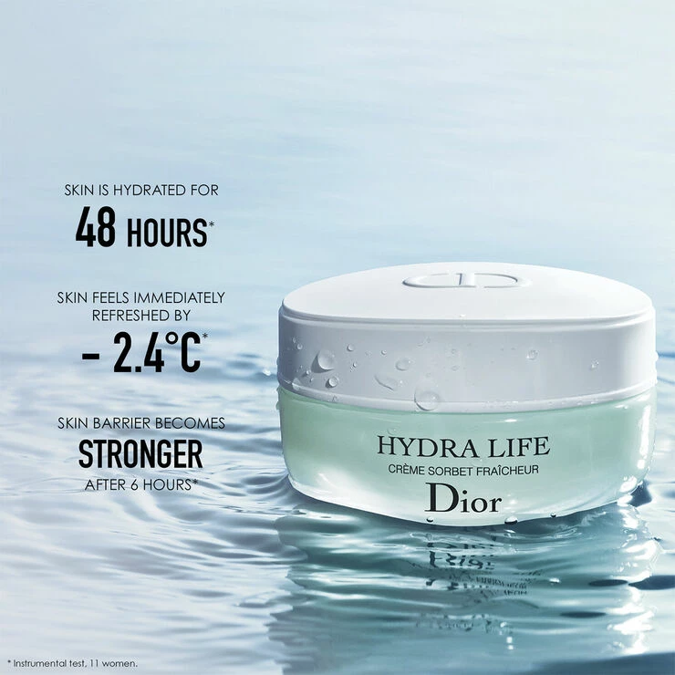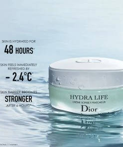 Denne ultrafriske fugtgivende gelcreme er både naturlig og effektiv. Dior Hydra Life Sorbet Creme indeholder en dobbelt så høj koncentration af hyaluronsyre,* er beriget med katost fra Diors haver og består af 95 %** naturlige ingredienser. Den holder huden fugtig i 48 timer*** og giver en øjeblikkelig følelse af friskhed og velbehag.