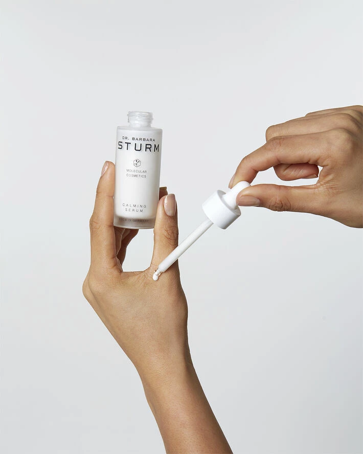 Dr. Barbara Sturms CALMING SERUM er beriget med et aktivt, plantebaseret kompleks af Cladosporium, Echium og Solsikke der reducerer irritation, rødme og brændende fornemmelser i huden. Portulak er et anti-aging kraftcenter der beroliger huden og reducerer synlige tegn på irritation. – Perfekt til at berolige din hud efter soleksponering, søvntab, jetlag, aircondition eller miljømæssig forurening. Ved længerevarende brug styrker serummet hudens naturlige forsvar og minimerer hudens reaktion ved sensitivitet.