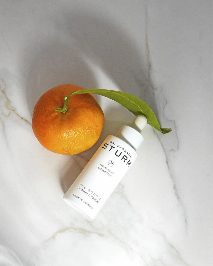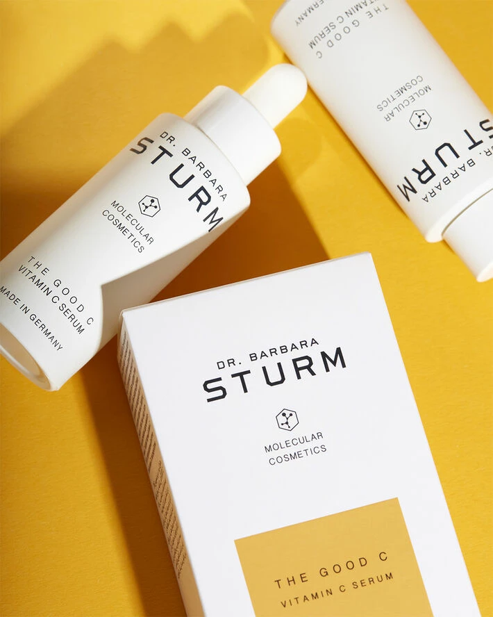 Dr. Barbara Sturms THE GOOD C VITAMIN C SERUM indeholder den proprietære formel af C-vitamin i tre hudvenlige formler. Serummet indeholder den optimale koncentration af C-vitamin på 5% i en stabil form, der let absorberes og er mild og skånsom for huden. THE GOOD C VITAMIN C SERUM indeholder forskellige aktive ingredienser, herunder olie-opløselig C-vitamin THD, syntetisk C-vitamin i glukosidform, samt ekstrakt fra kakadublomme, som er en frugt og en potent kilde til plantebaseret C-vitamin. Tilsammen hjælper disse ingredienser med at reducere ujævn pigmentering, ensarter hudtonen, og beskytter mod frie radikaler og miljømæssige stressfaktorer for at bevare en ungdommelig og sund hud. Derudover indeholder serummet zink, som hjælper med at øge optagelsen af C-vitamin i huden. Endeligt understøtter C-vitamin dannelsen af kollagen, der er nødvendigt for at bevare en fast, spændstig og ungdommelig hud.