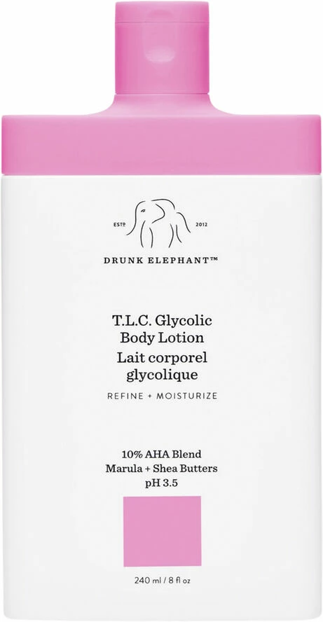Med vores drømmeholdsblanding af glycol-, vinsyre-, mælkesyre- og citronsyre-alfahydroxysyrer udglatter og forfiner T.L.C. Glycolic Body Lotion blidt ru, ujævn og bumpet hud og forbedrer samtidig områder med ujævn tone. En blanding af antioxidant-holdige, ikke-duftende planteolier og -smør – tænk på grønt tefrø, passionsfrugt, abrikos, marula og shea – lindrer og går i dybden for at fugte tør, irriteret hud, mens squalan, vitamin F, natriumhyaluronat og niacinamid arbejder for at skabe en stærkere og sundere syrekappe. Kraftige elektrolytter (kokosnøddefrugtjuice og natrium PCA) giver kritisk hydrering og hjælper med at forsvare sig mod miljømæssige stressfaktorer.