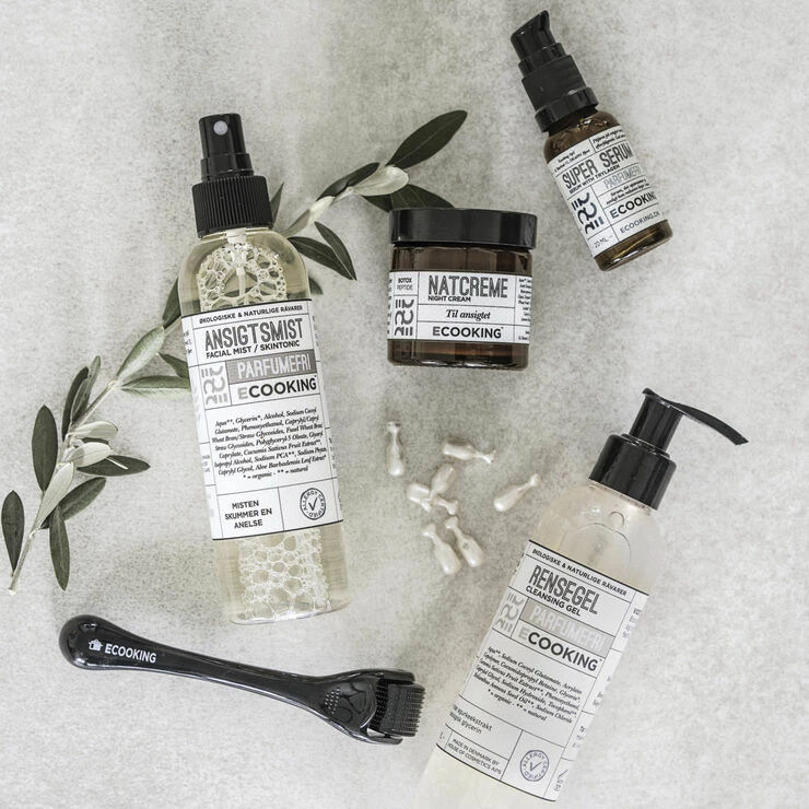 Anvendelse: Pump et par dråber ud i håndfladen og fordel forsigtigt i ansigtet med fingerspidserne. Afslut med Ecooking Dag- eller Natcreme. Serum er et tyndtflydende produkt, der har en stærk virkning. Det er nemlig målrettet mod et bestemt behov, ønske eller problem i huden. Derfor kan et serum ikke erstatte en dag- eller natcreme, fordi det er proppet med netop de ingredienser, der virker på det særlige behov, du har.