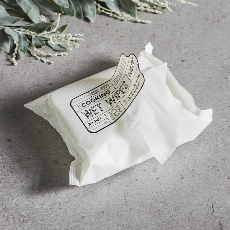 Ecooking Vådservietter er rensende og fugtgivende vådservietter til ansigt, hals og decolleté. Kan også bruges til snavsede fingre.