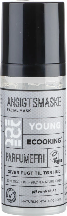 Som en del af din hudplejerutine, er det en god idé at bruge en maske 1-3 gange om ugen efter behov. En maske kan nemlig tanke din hud op med ekstra og målrettet pleje. Vores Young Ansigtsmaske er fyldt med fugtgivende ingredienser, som især er gode til at forkæle den unge og tørre hud. Et af fugt-talenterne i masken er hyaluronsyre, der er verdensmester i at give og binde fugt i huden. Vi har også tilsat ekstra fugt i form af provitamin B5 og økologisk Aloe vera, der yderligere køler og beskytter din hud. Sidst, men ikke mindst, indeholder Ansigtsmasken ingrediens, som får sunde bakterier til at trives i huden og samtidig undertrykker bakterier, der kan give urenheder. Derfor holder Ansigtsmasken din hud gennemfugtet og mindsker urenheder.