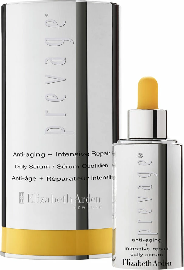 Intensive Repair Daily Serum mindsker øjeblikkeligt linjer og rynker og giver huden en smukkere glød og et fastere look. Dette avancerede produkt udvisker alderspletter og forbedrer hudens fasthed. Med tiden støtter PREVAGE Anti-Aging Intensive Repair Daily Serum hudens eget naturlige kollagen og elastin, så huden bedre kan beskytte sig mod miljømæssig stress. Ved regelmæssig brug afslører PREVAGE Anti-Aging Intensive Repair Daily Serum en mere strålende og ungdommelig hud – øjeblikkeligt og på længere sigt.