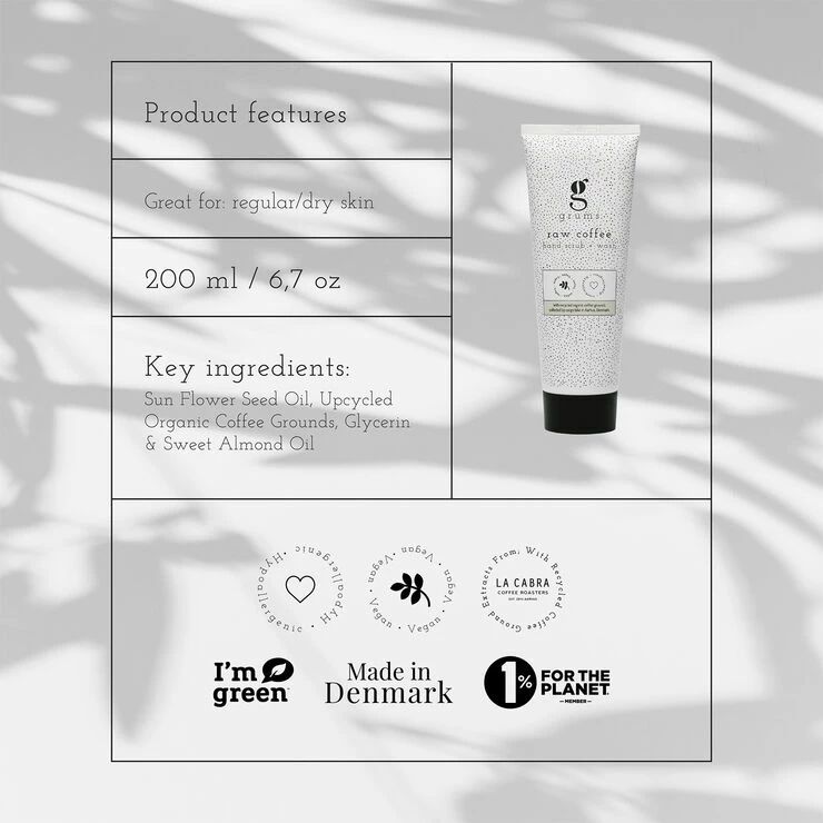 grums raw coffee hand scrub + wash er idéel til både udsat, tør og normal hud og efterlader din hud ren, blød og hydreret.
