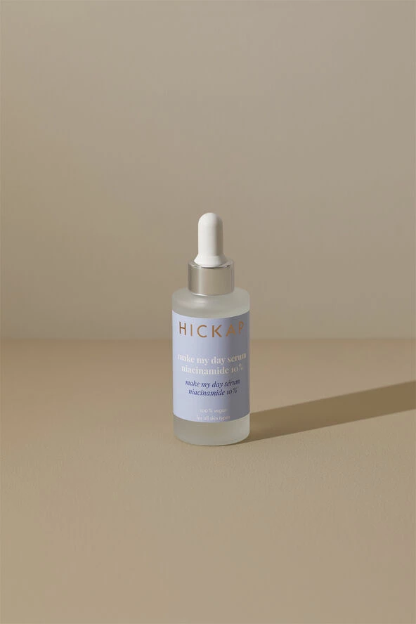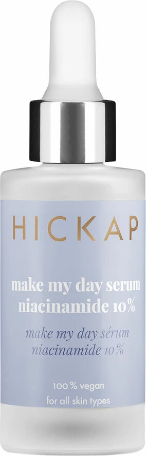Et højt koncentreret serum med 10 % niacinamid (B3-vitamin), der reducerer rødme, porernes synlighed og hyperpigmentering. Indeholder ekstrakt af rødkløver og hjælper med at udjævne hudtonen, regulere talgproduktionen og reducere urenheder. Beroligende allantoin og pantenol styrker huden og reducerer irritation. Lav- og højmolekylær hyaluronsyre giver sammen med grøn kaviar (udvundet fra alger) et næringsrigt kompleks, der virker intenst fugtgivende, så huden føles frisk og sund. Probiotiske sakkarider stimulerer hudens egen flora af gode bakterier og beskytter mod eksterne angreb. 100 % vegansk. Velegnet til alle hudtyper. Dermatologisk testet på sensitiv hud.