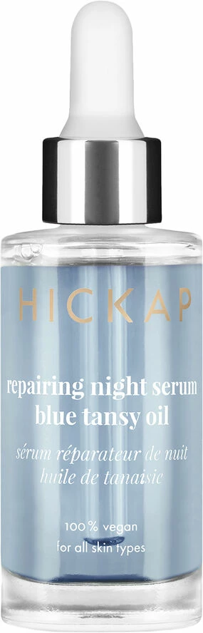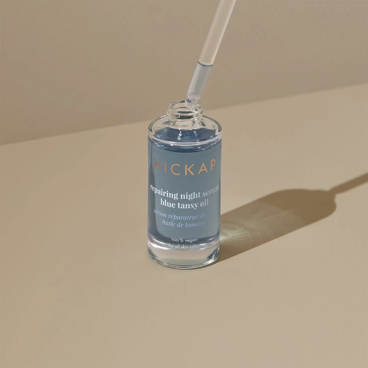 Et fugtgivende serum til brug om natten med bakuchiol, der styrker og beroliger huden, mens du sover. Det nærende serum med silkeblød blue tansy-oil både reparerer, modvirker irritation og beroliger den følsomme hud om natten. Antioxidanten vitamin E beskytter og beroliger, mens naturlig plantebaseret phytosterol og bakuchiol hjælper med at styrke, genopbygge og udjævne hudens struktur. Huden vågner fornyet med en skøn elasticitet og glød. Plantebaseret squalane blødgør, reparerer og fugter huden og fungerer samtidig som transportør for at øge effekten af andre aktive ingredienser. 100 % vegansk. Velegnet til alle hudtyper. Dermatologisk testet på sensitiv hud.