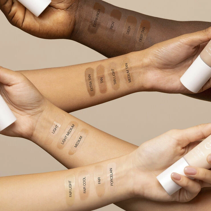 Denne farvede dagcreme fås i 13 nuancer. Denne dugfriske formel ser perfekt ud på alle takket være de næsten helt neutrale undertoner. Den er super blandbar og perfekt at bruge hver dag, og vi ELSKER den problemfri påføring! Pumpen gør den også super let at anvende, når du er på farten!