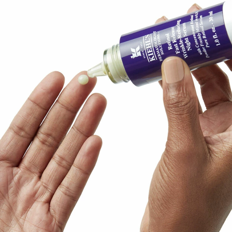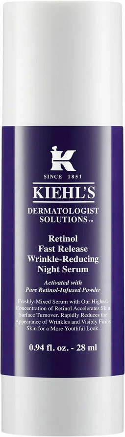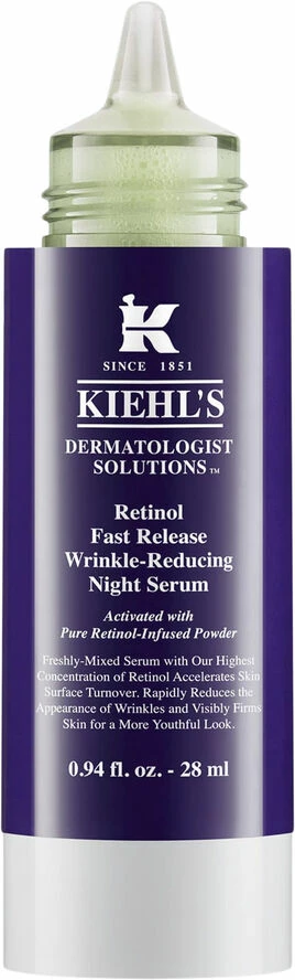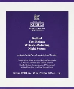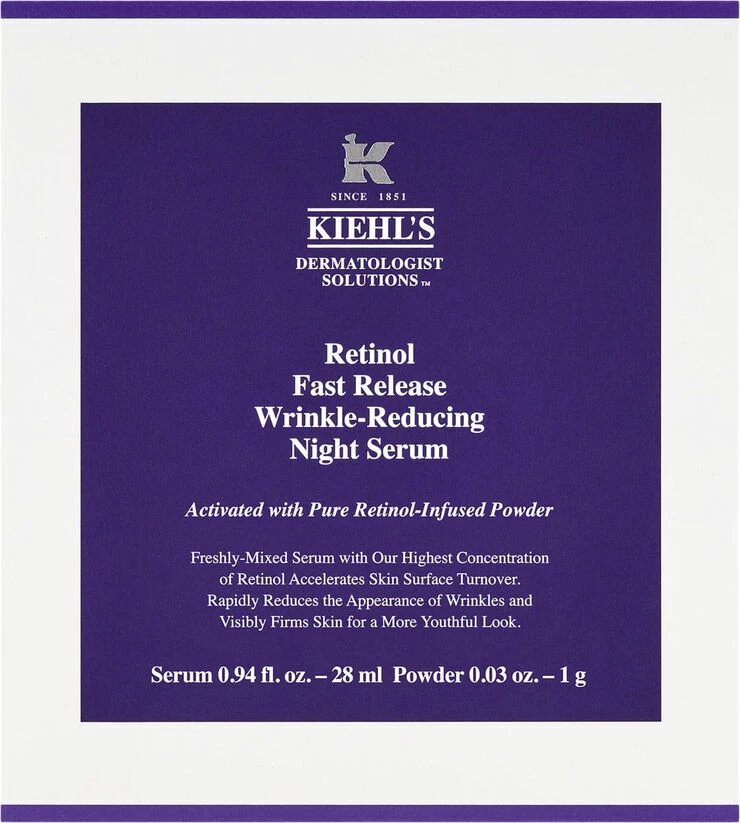 Kiehls hurtigtvirkende 0,3% retinol natserum fremskynder cellefornyelsen på hudens overflade. Oplev en synlig reduktion af fine linjer på bare 5 dage og en synlig forbedring af rynkerne på 2 uger. For at sikre maksimal effektivitet, har Kiehl’s isolereret den høje koncentration af rent retinolpulver i en innovativ flaske, der først blander retinol i serummet ved første brug. Ved kontinuerlig brug hjælper dette natserum med retinol huden med at ser synligt glattere og mere ungdommelig ud.