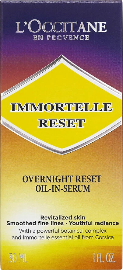 Overnight Reset Serum. Genopbyg og omdan din hud over natten med denne nye helte serum, som giver et mere ungdommeligt udseende. Over natten bliver hudteksturen omdannet og huden synes ungdommeligt om morgenen. Overnight Reset Oil-in-Serum genopbygger din hud over natten, som dagligt bliver udsat for forurening og dehydrering, som tilsammen nedbryder huden. Over tid ved brug af denne serum fremstår din hud mere ungdommelig og linjer og rynker synes tydeligt formindsket. En forbruger test hviler på resultater over 28 dage af 115 kvinder, herunder alle hudtyper samt alle aldre (start tyverne). Serummen har en delikat tekstur samt dufter af skønne æteriske olier, som er kendt for sine antiaging egenskaber, herunder Acmella Oleracea ekstrakt, som er kendt for sin øjeblikkelige blødgørende effekt. Herudover er der også merian ekstrakt, som hjælper med at vække huden. Serummen er indkapslet i en smuk guldkapsel og fremstår transparent. Fordele: Efter 1 nat: Huden opleves velfugtet, blødere og synes friskere. Efter 7 nætter: Huden opleves fornyet med en flot, ungdommelig glød og fine linjer og rynkes synes formindsket. Efter 28 dage: Huden fremstår med en ungdommelig glød med mindre synlige linjer og dybere rynker samt synes tydeligt fornyet og frisk.