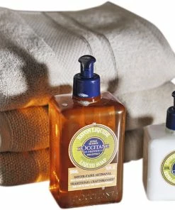 Denne sæbe i stor pumpe-flaske er skånsom til tør, følsom eller beskadiget hud. Den fås med nærende shea butter og beroligende aloe vera ekstrakt. Fås i L’Occitane Verbena og lavendel dufte.