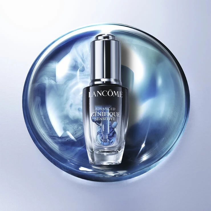 INTENST BEROLIGENDE OG GENOPRETTENDE. TIL ALLE HUDTYPER, SELV SENSITIV OG REAKTIV HUD. Lancôme Advanced Génifique Sensitive Dual Concentrate er en anti-age serum, der er velegnet til alle hudtyper. Den styrker hudens barriere og beroligerer øjeblikkeligt din hud. Med dens unikke formel, beriget med 7 præ- og probiotiske ekstrakter, hjælper dette intenst genoprettende koncentrat med at styrke hudens barriere og beskytte mod daglige aggresioner. To koncentrater i ét, isoleret indtil første brug for at bevare deres friskhed. Det blå koncentrat, beriget med antioxidanterne ferulinsyre og E-vitamin , frigives i serumbasen for at skabe et intenst genoprettende koncentrat, der hjælper med at berolige og genoprette huden. Synligheden af porer og rødme reduceres. Til alle hudtyper, selv sensitiv og reaktiv hud. ØJEBLIKKELIGT BEROLIGENDE KONCENTRAT HURTIGERE GENOPRETNING AF HUDEN REDUCERER SYNLIGHEDEN AF PORER OG RØDME Advanced Génifique Sensitive, beriget med præ-og probiotiske ekstrakter, beroligerer øjeblikkeligt sensitiv hud. På 30 dage hjælper den med at reducere rødme, porer og uens hud. Efter 4 uger* statistisk signifikant reducering af rødme 87%** af kvinderne oplevede, at huden føltes beroliget * Kosmetoklinisk objektiv gradering efter 4 uger, 56 kvinder ** Selvevaluering efter 4 uger, 56 kvinder Det anbefales at bruge produktet inden for 2 måneder efter åbning!