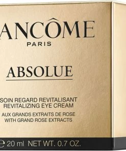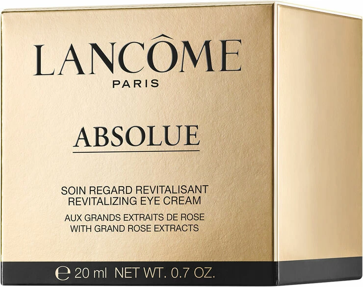 Lancôme Absloue Revitalizing Eye Cream. Den exceptionelle Lancôme Absolue-serie er inspireret af 20 års forskning inden for hudens fornyelse. Lancôme Absolue Eye Cream er renoveret med en ny glas og med en optimeret formel med Grand Rose ekstrakter. Lancôme Absolue Eye Cream er en luksuriøs øjencreme, som er specielt udviklet til de sarte øjenomgivelser. Øjencremen har en delikat og silkeagtig konsistens, der efterlader en blød og frisk fornemmelse. Rynker reduceres og øjenomgivelserne synes mere glatte og lysende, idet formlen indeholder mikroperler. Opdateret med en ny formel, der giver huden fornyet vitalitet. Øjenområdet bliver glattere, rynker mindskes og huden får sin ungdommelig glød tilbage.