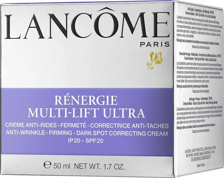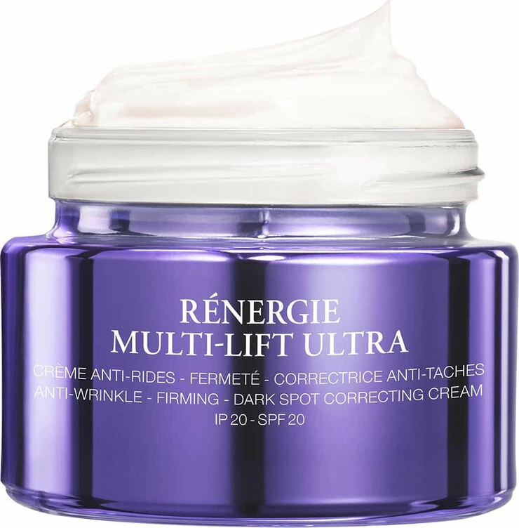 Lancôme Rénergie Multi-Lift Ultra SPF 20 er en moderne anti-age creme med en delikat tekstur, der smelter ind i huden. Huden synes fastere og mere fyldig, med en mere ensartet og klar hudtone og ansigtets konturer mere definerede. Huden føles mere fast, og linjer og rynker synes reducerede. Den nye stjernecreme med SPF inden for Rénergies anti-age-ekspertise.