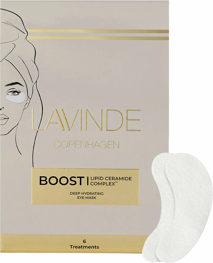 BOOST – Deep Hydrating Eye Mask giver øjeblikkelig din hud et fugtboost. Lipid Ceramide Complex tilfører huden dybdegående fugt og går samtidig ind og gendanner din huds beskyttende barrierefunktion. Kombinationen af det aktive Peptid i Argireline og SkinTight’s opstrammende effekt, forbygger og reducere de fine linjer omkring øjnene og har en udglattende effekt på dine rynker. BOOST – Deep Hydrating Eye Mask reducerer samtidig hævelse og rødme omkring øjnene og efterlader huden med en smuk fornyet glød. Som bonus er Lavinde Copenhagen’s BOOST – Deep Hydration Eye Mask er deklareret i samarbejde med Astma-Allergi Danmark. Anvendelse: BOOST – Deep Hydration Eye Mask ligger sig som en let silkeblød maske som ubesværet påføres og forbliver siddende. Lad masken sidde i 15-20 min. for at opnå det bedste resultat. Massér det overskydende produkt ind i huden inden du påfører din creme eller makeup.