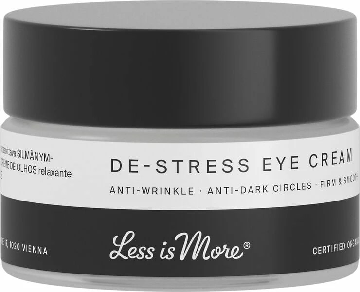 De-Stress Eye Cream føles silkeblød på den tynde, sarte hud under øjnene. Denne meget effektive hudpleje indeholder neurofrolin, en nyligt opdaget neurokosmetik, der reducerer stressrelateret kortisolproduktion og derved bekæmper rødme, tegn på stress og mørke rande. Den potente anti-aging øjencreme fremmer et glat, fast og strålende område under øjet, hvilket reducerer udseendet af fine linjer og rynker. Det hjælper også med at forhindre tegn på hudens aldring i at dukke op og modvirker skader forårsaget af UV-stråler og miljømæssige stressfaktorer såsom fint støv.