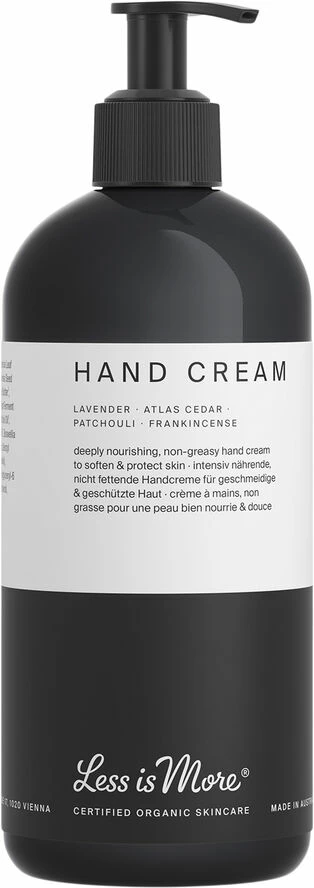 Denne eksklusive og økologiske Hand Cream er en forfriskende og fugtgivende creme til hænderne. Fugter og blødgører huden med en fortryllende blanding af kakaosmør, aloe vera og kokosolie. Med den lette duft af æteriske olier fra lavendel, ceder og pathouli forkæles sanserne på daglig basis.