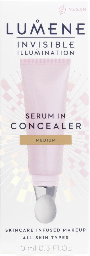 Invisible Illumination Serum in Concealer er en fugtende, opbyggelig concealer, som perfekt dækker mørke rande under øjnene, ujævnheder osv. En makeup-hybrid, som kombinerer de plejende egenskaber fra et øjenserum med concealerens dækkeevne. Den ultra-lette konsistens sætter sig ikke i hudens fine linjer og blender naturligt ind i huden med en naturlig finish, der kan tilpasses i intensitet og dækkeevne med den opbyggelige dækning. Den veganske, hudplejeberigede formel indeholder bl.a. fugtgivende nordiske alger, beroligende E-vitamin samt nordisk pileurt for glød og udstråling.