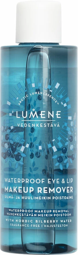 Lumene Waterproof Eye & Lip Makeup Remover er en to-faset makeup fjerner, der effektivt fjerner selv den kraftigste makeup fra øjne og læber. Også vandfast makeup. En duftfri lotion med olie bidrager til at nære vipperne og huden omkring øjet. Velegnet til alle hudtyper. Vegansk og cruelty-free.