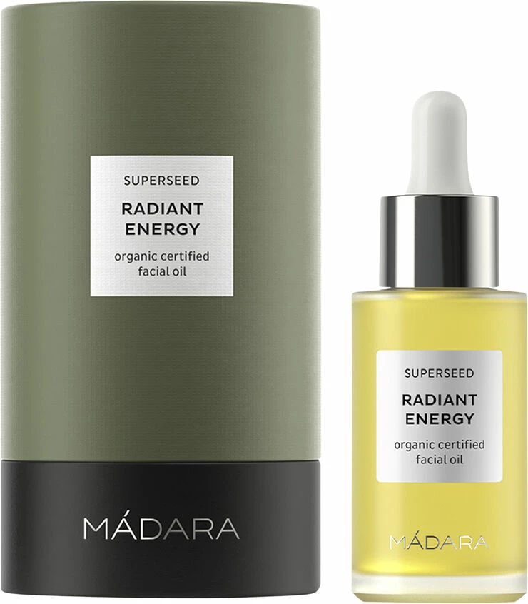 Et koncentrat, der forstærker hudens udstråling, ved hjælp af 9 sjældne og dyrebare tørolier, der giver huden en eksklusiv, ungdommelig glød. Den antioxidante effekt af de mange vitaminer i blåbær-, multebær-, tranebærfrøolier er synergisk blandet sammen med den revitaliserende virkning fra brombær, sort kommen, persillefrøolier og er indhyllet i den hudblødgørende trio af græskar-, boras- og golden jojobafrøolier. Denne cocktail af tørolie, der næsten øjeblikkeligt optages af huden, forstærker hudens naturlige regenerering og hydrering, hjælper med at neutralisere miljømæssige forureningskilder og påvirkning og genopliver huden. SÆRLIGT GAVNLIG FOR kedelig, træt hud, manglende glød og glans, manglende elasticitet og fasthed, første alderstegn. ANVENDELSE: Tilføj et par dråber til din fugtighedscreme, eller brug den alene morgen og aften.