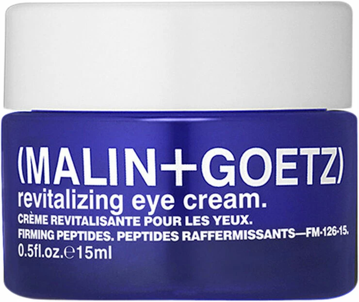Malin+Goetz – Revitalizing Eye Cream er den ultimative øjencreme for total øjerevitalisering. Denne øjencreme er intenst nærende, men føles alligevel utrolig let og luksuriøs. Behandler og hjælper alle større udfordringer omkring øjet, herunder linjer, rynker, hævelser og mørke rander med en avanceret blanding af opstrammende peptider og hudfornyenede ekstrakt fra marine alger. Den styrker og hjælper med at beskytte øjenområdet, så det forbliver lysere, glattere og mere smidig. Opstrammende Peptider hjælper med at reducere udseendet af linjer, rynker og giver fast hud omkring øjenområdet. Marine alge ekstrakt stimulerer hudens fornyelse, og giver et friskere udseende om øjnene.Malin+Goetz – Revitalizing Eye Cream med vindruekerneolie er rig på antioxidanter og barriere-styrkende solsikkeolie beskytter huden mod frie radikaler og opretholde hudens indre fugt.Fatty Acid Technology leverer let, men alligevel intens hydrering. Natriumhyaluronat og Panthenol booster fugt og øger blødhed og smidighed. Brugsvejledning: Brug ringfinger til at anvende en lille mængde under øjet med en blid duppe bevægelse.