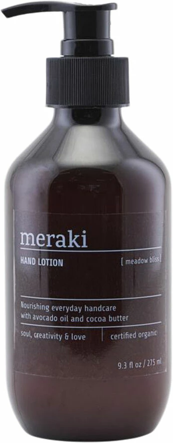Plej dine hænder med håndlotionen, Meadow Bliss, fra Meraki. Lotionen er et økologisk certificeret produkt som giver din hud fugt og pleje og har duftnoter af citrus, verbena, mint og te. Håndlotionen kommer i en stilren flaske som giver dit badeværelse eller køkken det perfekte udtryk. Produktet er velegnet til daglig brug og kan bruges af alle hudtyper. Brug lotionen efter du har vasket dine hænder med håndsæbe og beskyt dine hænder mod tørhed.