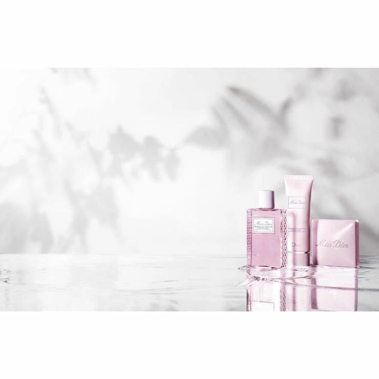 Miss Dior-sæben renser skånsomt huden. Dens friske og cremede skum forlænger den lette duft af Miss Dior Blooming Bouquet. Det ikoniske hanefjedsmønster, der er præget i sæbens bund, giver et elegant udtryk.