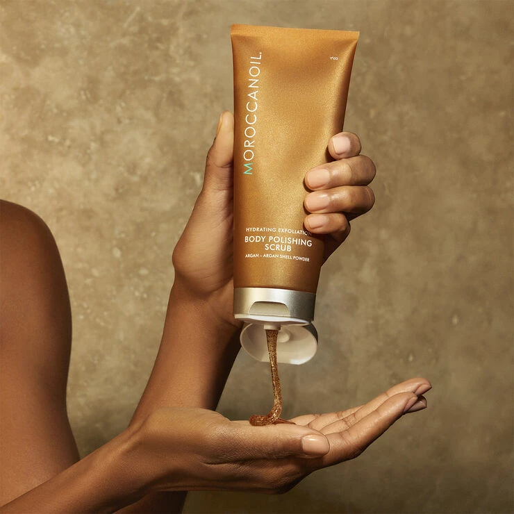 FUGTGIVENDE EKSFOLIERING. Moroccanoil Body Polishing Scrub er en skånsom og genopfriskende body scrub, som kan bruges til alle hudtyper. Den eksfolierer og fugter huden og efterlader den blød og glat. Den har en lækker gelé-konsistens og indeholder pulver fra arganskaller og lava pimsten, som effektivt fjerner døde hudceller og efterlader huden silkeblød. Formlen indeholder også 6 forskellige olier (risklid, avocado, mandel, argan, saflor og vindruekerner), der tilfører masser fugt og pleje samt opfrisker huden. Body Polishing Scrub er med Moroccanoils delikate signaturduft Fragrance Originale, som giver en behagelig oplevelse og nydelse for huden og sanserne. EGENSKABER: – Eksfoliering – Fjerner døde hudceller – Fugtgivende – Opfrisker huden – Plejer huden med antioxidanter og E-vitamin – Indeholder 6 forskellige olier – Efterlader huden silkeblød – Skånsom formel, der kan anvendes 2-3 gange om ugen – Dufter delikat af Fragrance Originale – Velegnet til alle hudtyper NØGLEINGREDIENSER: – Pulver fra arganskaller – Lava pimpsten – Risklidolie – Sød mandelolie – Saflorolie – Vindruekerneolie – Arganolie – Avocadoolie BRUGSVEJLEDNING: – Massér på fugtig eller tør hud 2-3 gange om ugen. Skyl af med vand.