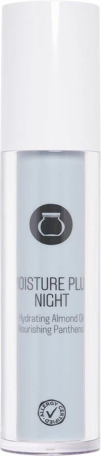 Moisture Plus Night er en ekstra plejende og fugtbevarende natcreme, særligt udviklet til tør hud. Cremen indeholder vigtige ingredienser som plejende Panthenol, mandelolie der øger hudens hydrering samt berigende Shea Butter. Desuden er der tilsat fugtgivende Betaine og beskyttende brun alge ekstrakt. Alt det bedste til optimal fugt og pleje til tør hud.