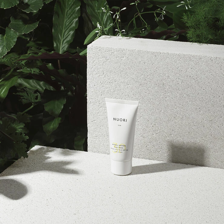 NUORI™s Mineral Defence er en naturlig solcreme, der giver høj beskyttelse mod både UVA- og UVB-stråler. Solcremen er formuleret med en ny generation af zinkoxid, der er transparent på huden men samtidig helt uden nanopartikler. Ekstrakt fra fransk strandfyr og gulerodsolie leverer effektiv antioxidantbeskyttelse og giver cremen sin naturligt tonede og universelt smigrende nuance uden brug af farvestoffer.