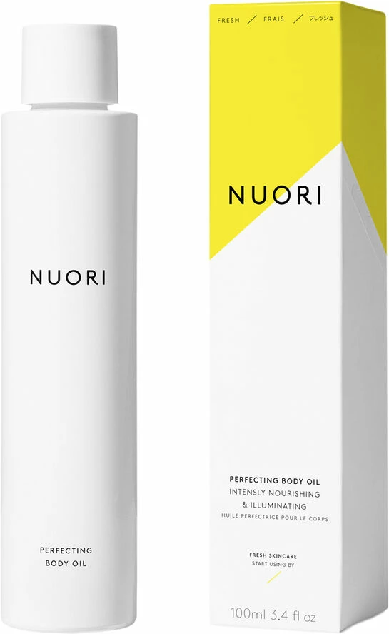 NUORI’s delikat duftende, luksuriøse Perfecting Body Oil nærer intenst huden. Olien, der er omhyggeligt formuleret til at matche hudens naturlige, lipide balance, absorberes let og efterlader huden blød med et silkeskær. Økologisk hybenolie regenerer huden og tilbyder sammen med E-vitamin antioxidantbeskyttelse. Vindruekerne-, abrikoskerne- og avocadoolie, der alle er rige på essentielle fedtsyrer, genopbygger hudens fugtniveau og genskaber en sund glød.
