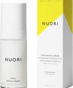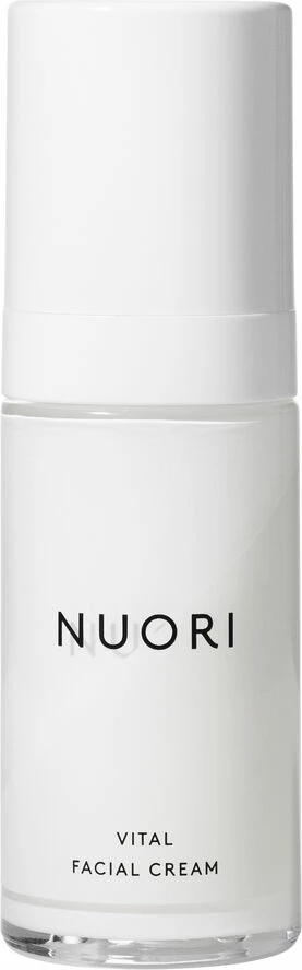 NUORI’s Vital Facial Cream er en let creme, der bringer hudens vitalitet tilbage og hjælper med at forebygge og reducere de første ældningstegn. Cremen er formuleret med en unik form for hyaluronsyre, der er i stand til at trænge dybere ind i huden og dermed genoprette hudens naturlige fugtbalance. Plantebaseret squalane, jojobaolie og sød mandelolie nærer huden og efterlader den glat og smidig, mens sheasmør, C-vitamin og E-vitamin giver antioxidant beskyttelse. Da denne creme er nemt absorberende, kan den både bruges alene og under makeup.