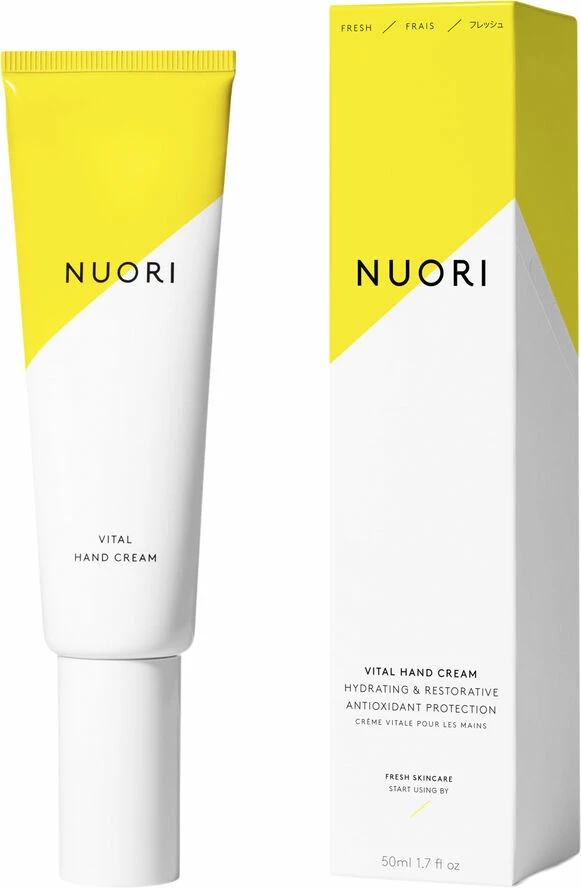 NUORI’s luksuriøst duftende Vital Hand Cream er den ideelle revitaliserende kur for hænder. Denne creme, der er formuleret med plantebaseret squalane, sheasmør, vindruekerne- og mandelolier, genopretter effektivt hudens fugtniveau og udglatter fine liner. E-vitamin og hvid te ekstrakt beskytter derudover også huden mod frie radikaler. En innovativ, lufttæt tube beskytter den naturlige formel og gør dermed denne håndcreme perfekt til at tage med på farten.