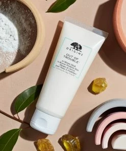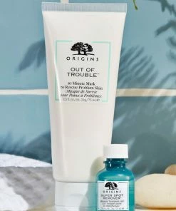 Når huden bliver lidt for fedtet, og problemerne begynder at melde sig, står Origins klar til at holde din hud “”Out of Trouble””. En blød og kølende ansigtsmaske, der redder problem hud. Superabsorberende zinkoxid og svovl, samt salicylsyre opsuger lynhurtigt overskydende glans og olie, fjerner døde hudceller og gør kort proces med affaldsstofferne. Kamfer opfrisker, køler og beroliger huden. Sammen styrer de huden fri af gyngende grund, forbedrer hudens struktur og går til kamp mod ballademagerne for at forebygge potentielle udbrud. Anvend dit foretrukne renseprodukt. Fordel på ren hud. Fjern efter 10 minutter med en fugtig vaskeklud.