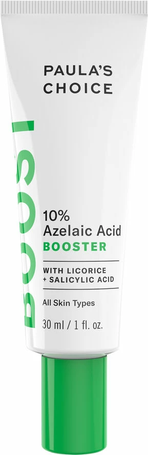 Falmer brune pletter, reducerer mærker fra pletter og beroliger huden. The Azelaic Acid Booster er en ægte multitasker. Den kraftfulde kombination af azelainsyre, salicylsyre og planteekstrakter har flere fordele for huden. Denne booster falmer synligt brune pletter forårsaget af solskade, arbejder for at reducere udbrud og mindsker røde mærker fra tidligere pletter. Oplysende og lindrende ingredienser, afledt af planter, giver en mere strålende og jævn hudfarve. Et perfekt alternativ for dem, der er følsomme overfor peroxid. Brug en eller to gange dagligt efter rensning, toning og eksfoliering. Føj 2-3 dråber til din favorit fugtighedscreme eller serum. Kan bruges alene. Om dagen, efterfølg med en bredspektret solcreme med SPF 30 eller højere. Kan bruges omkring området under øjnene. Hvad er hovedingredienserne? ENISONEDA Ingrediens, afledt af gær, der fungerer som et godt lindrende og hud-restaurerende middel. DICA CIALEZA En antioxidant, der har tydelige hudlindrende virkninger og er effektiv til oplysning af huden. SALICYLSYRE/BHA Primært et eksfolierende middel, fjerner død hud på overfladen og inde i poren. Derfor reducerer den effektivt udbrud og hudorme. Den har også lindrende egenskaber.