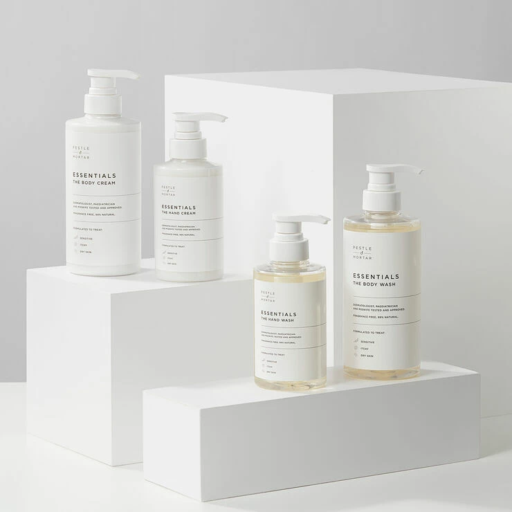 Pestle & Mortar introducerer Essentials kropsprodukter, der er effektive, rige på gode ingredienser og rent faktisk gør en forskel. Velegnet til hele familien. En ren, klinisk og effektiv daglig håndsæbe formuleret med havrekerneekstrakt, panthenol og Gotu Kola bladekstrakt, velegnet til hele familien. Tilsat vitamin E for at forhindre tørre hænder. Den renser og blødgør hænderne grundigt, mens den lindrer kløende, tør eller sensibiliseret hud. Denne ikke-skummende, 99% naturlige formulering er fri for mineralolie, SLS og kunstig duft. Dermatologisk testet, jordemoder godkendt og børnelæge godkendt, Essentials Hand Wash renser og blødgør huden og lindrer kløende hudtilstande. Velegnet til alle hudtyper.